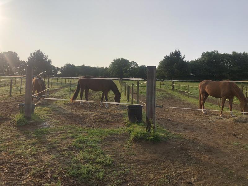 Les chevaux son sortie tous les jours paddocks en herbe. Carriere. 3 douches plus aire de pansage rond de longe fion enrubanne soir et matin et granulé
