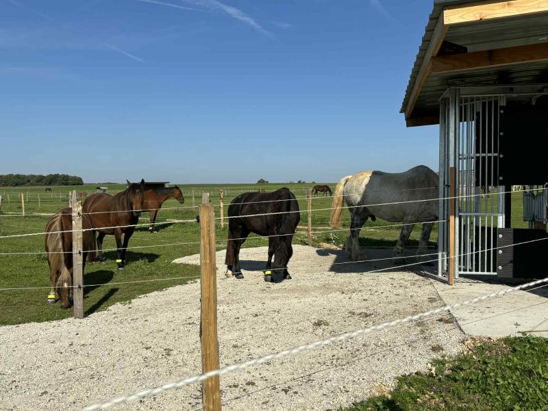 Chaque zone (abris, alimentation, eau, repos, roulade) est judicieusement répartie pour encourager les déplacements et préserver la santé articulaire, musculaire et digestive de vos chevaux.