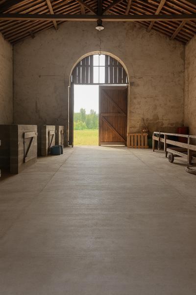 -Boxs de 3x4 et stabulations dans le hangar en pierre bien frais en été.